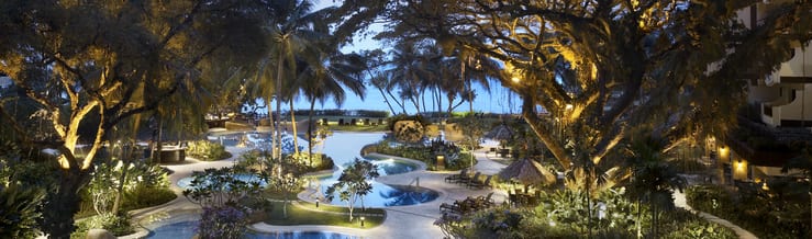The spacious, Malaysian-inspired Deluxe Rooms face the beach and ocean, with direct access to the landscaped gardens and pools.