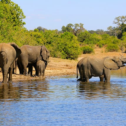 Forming the northern border of Chobe National Park, this river flows through a scenic stretch of South African country, and is renowned for the magnificent breadth of African Wildlife along its banks. Ideal for lovers of nature and animals, Chobe River cruises provide a safari experience like no other, with your ship calling at strategic areas across the Chobe National Park where amazing things can be seen. From full-year residents to migratory creatures, your river safari here gives you the opportunity to spot inspiring animals like African elephants, giraffes, hippos, cheetah, African wild dogs, and so much more.