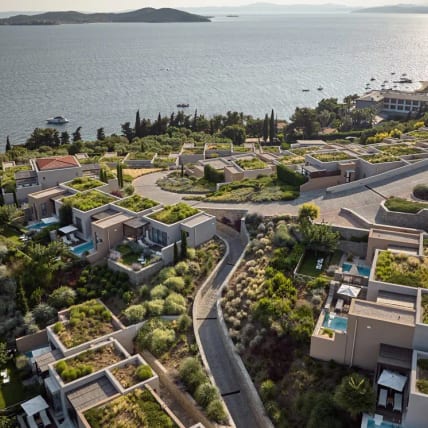 Choose this sea-front, family-owned villa complex to host your Halkidiki holiday in style. Expansive floor plans; spacious interiors that bring the outside in via large windows and sliding doors; high spec fitted kitchenettes with wine cooler and 80-litre fridge, and private plunge pools round off an astonishing range of luxury features designed to make your stay as comfortable as possible.
