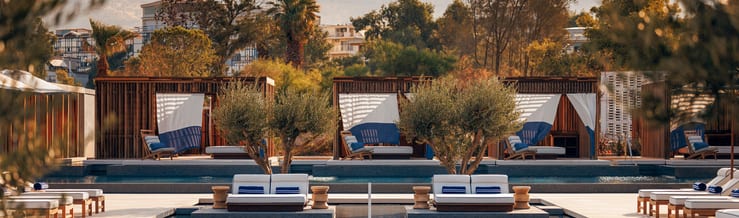 For dreamy ocean views, this generously sized bungalow boasts abundant seclusion, natural charm and a prime seafront position. The Riviera Bungalow Suite – Seafront flaunts inviting indoor and outdoor space, including an expanded living area by the bedroom and impressive gardens, planted with perfumed Mediterranean flora. Bungalow highlights span a private pool and outdoor terraces with a refreshing open-air shower and modern al fresco fireplace. Indoors, relax in your stylish lounge and dining room overlooking the sapphire waves, or retreat to your private bedroom, where a stunning marble bathroom and king-sized bed await.