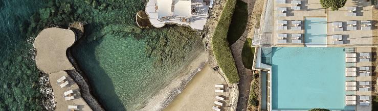 St. Nicolas Bay charms guests with its beautiful private beach, Mediterranean character and quaint but stylish accommodation. Natural stonework and whitewashed walls enhance the brilliant blue Mediterranean sea views which dazzle throughout the resort. Quite simply, St. Nicolas Bay Resort is the perfect place from which to enjoy a soothing, unforgettable holiday on the Greek island of Crete.