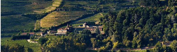 These 16 generously sized rooms have a very modern yet cozy atmosphere with a spacious sitting area. With a footprint of 430 to 495 square feet (40 to 46 square meters), they offer views of the woodland, pebbled terrace, vineyards or courtyard, all with floor to ceiling windows. The terrace-facing rooms have steps accessing to the outside and are close to the exterior staircase. Several of the woods-facing rooms also have a balcony with seating.