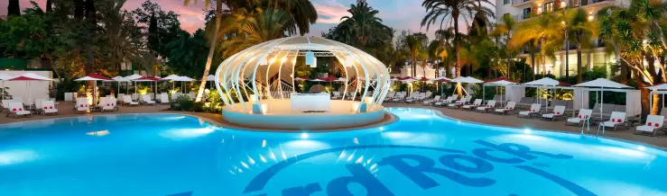 Live like a rockstar on the Costa del Sol at Hard Rock Hotel Marbella. The luxurious accommodation comprises 383 rooms and suites, with music naturally the central theme of every space. Views over the hotel's lush grounds, Puerto Banús, and the sparkling sea can be soaked up from most rooms. The 24-hour room service guarantees guests a VIP experience.