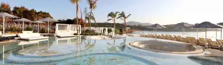 All 151 rooms and suites at BLESS Hotel Ibiza have been decked out with the guest in mind. Each space has a bright and contemporary perspective with soft design touches and blushes of colour. Enjoy a luxury memory foam mattress, balcony or terrace with furniture, walk-in wardrobe, flat screen TV, concierge, and turn-down services with every room. When you’re not lounging at one of three swimming pools with waiter service, or enjoying direct access to the white-sand beach, why not stop at the spa for a facial or body treatment, a sensory shower or a sauna session. There are three wonderful bars to choose from and a selection of two first-class à la carte restaurants.