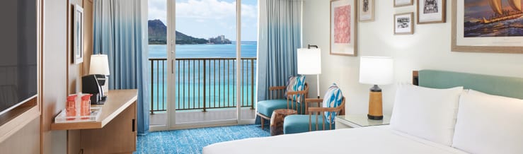 Launch your well-deserved holiday in the tranquility of a private retreat. The Partial Ocean View Room at Outrigger Reef Waikiki Beach Resort features a lanai or balcony with stunning ocean views, air conditioning, and a cosy couch/pull-out sofa. Enjoy amenities like a refrigerator, in-room safe, Chromecast TV, high-speed internet, and automated wake-up calls. Relax in a spacious setting with blackout drapes and a choice of tub or shower.