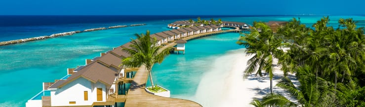 Sunset Beach Villas - (64 Villas - 100 m²) Some of the largest entry level beachfront villas in the Maldives. Elegantly designed with guest comfort in mind; high ceilings & open-air bathrooms. The sunset beach villas are nestled along the long stretch of beach with each individual villa having direct beach access just few meters in front of their large open-air veranda. Ideal for honeymoon couples.