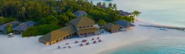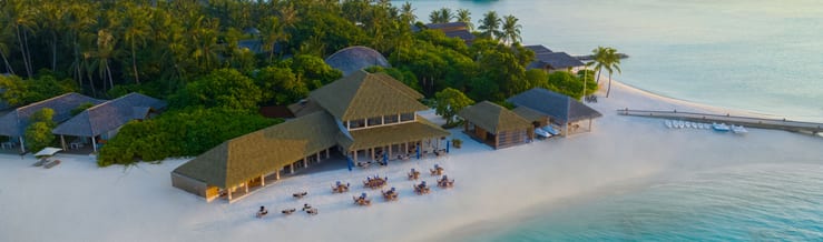 This five-star, all-inclusive resort is home to 80 luxurious villas; 38 of which are found on the beach nestling in lush vegetation. The other 42 villas perch elegantly above the dazzling lagoon, which is home to one of the Maldives' most stunning coral reefs. The majority of the villas also have a private pool with ocean views.