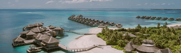 Weathered wood jetties lead to these overwater havens secluded by high bamboo enclosures. Relax outside on padded daybeds, overwater hammocks or at the glass dining table set above the gently swaying sea. Within each high ceilinged retreat, organic cotton sheets and customizable pillows top the cloudlike bed angled to optimize blue views. Soak up more Indian Ocean from the all glass bathtub and shower in the open air alongside a private water garden. Climb up to the treetop deck for a uniquely Maldivian panorama of the sapphire seascape and unobstructed equatorial sunset.