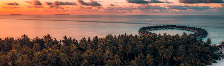 On the remote island of Meedhuffushi in the Maldives' South Nilandhe Atoll is where five-star Sun Siyam Vilu Reef lies, surrounded by lush tropical greenery. The All Inclusive resort makes up the entire island, which is a 35-minute seaplane flight from Malé International Airport.