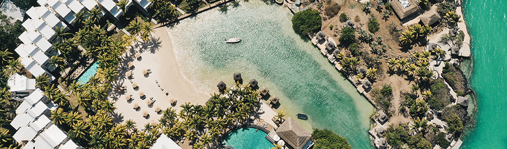 The location of this exquisite boutique resort is unparalleled - an unspoiled enclave of ivory sands and crystal clear waters, surrounded by a majestic rocky formation and exuberant vegetation. It's only a few miles away from the vibrant town of Grand Bay and under half an hour from the capital Port Louis.