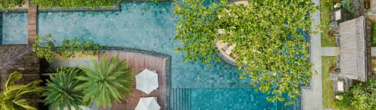 The Two Bedroom Family Suite is located between two of the resort's beaches on the peninsula and sleeps up to five guests. The master bedroom and its ensuite bathroom with shower and sumptuous standalone bathtub that opens onto an outdoor lounge are on the ground floor, while the children's ensuite bedroom is on the floor above. There's also a living room, private terrace, and a secured garden area for the children to play.