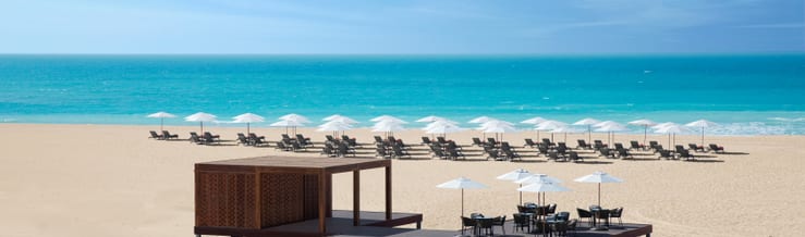 Beachfront Bar - With a stunning beachfront location, live DJ music and a focus on sharing plates, Nasma Beachfront Bar offers the best sea views and coolest vibes on Saadiyat Island. Grab a bean bag, sofa, hammock or a private cabana and socialise while you sip on hand-crafted cocktails and sundowners, all mixed to perfection by the expert bartenders. Share fresh sushi, antipasti, ceviche and local delicacies with friends, followed by shisha if you wish. Please note: During the period of Ramadan (May 5-June 4) the bar will be opened from 11am-midnight.