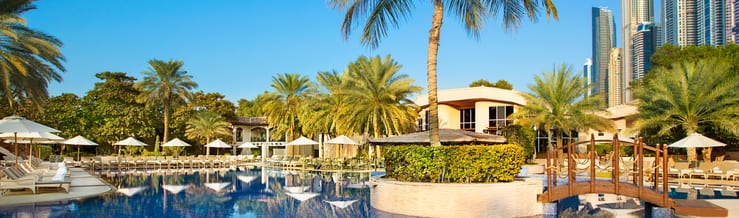 A Dubai holiday to Al Habtoor Grand means you can relax in immaculate rooms with 5 star amenities including deluxe bedding, large flat-screen TVs, and incredible garden or Dubai Beach views. Many rooms also offer private balconies. Elsewhere in the Habtoor Grand Resort & Spa, guests can enjoy tennis and squash courts, gym, three swimming pools plus a wide range of watersports. Seeking relaxation? The 5* Elixir Spa has five treatment rooms with over 30 facial and body treatments to enhance your wellbeing. For children, the Jungle Kids Club provides fun and educational entertainment. The club has a dedicated supervised swimming pool, a sandpit, a climbing rope and a seesaw so the children can have fun whilst you relax in style.