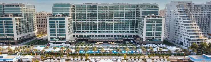 Commanding a stately presence on Palm West Beach on Dubai's exclusive Palm Jumeirah is luxurious, beachfront Hilton Dubai Palm Jumeirah. Take in sweeping views of the Arabian Gulf and the Dubai Marina skyline from sumptuous indoor spaces, as well as from the hotel's private beach.