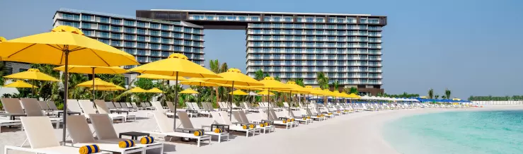 Lying next to a private 300m-stretch of white sand on Al Marjan Island in Ras Al Khaimah is Mövenpick Resort Al Marjan Island. The luxurious resort is ideal for families, with multiple pools, kids’ club, and the largest floating water park in Ras Al Khaimah.