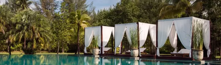 This ultra chic yet effortlessly stylish and unpretentious hotel features a wide array of facilities that range from private yacht cruises to spa and fitness centre. The restaurants at the Sarojin are gourmet temples that offer authentic Thai delicacies and the best international cuisine. Guests can also make their holiday unforgettable with a choice of optional experiences. These include a full day of snorkelling or cruising at the Similan Islands, private jungle dinners, or a private sunset cruise with a “Shipwrecked in Style” desert-island dinner. For further indulgence, the hotel also offers exotic and intimate dinners against the breathtaking backdrop of a waterfall nearby, perfect for a special occasion.
