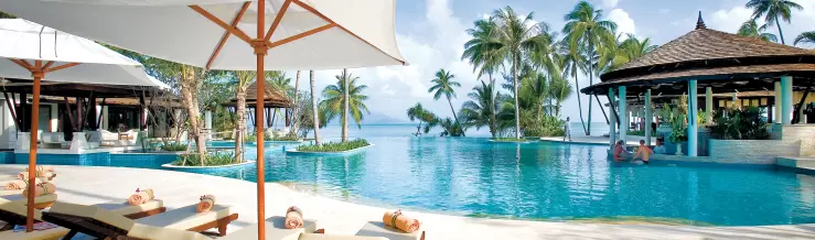 Pool Villa Suites ultimate comfort for a two-some,master bedroom opening to your jacuzzi swimming pool,2 pooldecks with loungers plus a Sala set in your private garden,double vanity basins and tub,dressing room and spacious living room with home theatre.