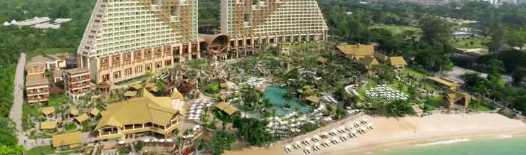 Situated in North Pattaya, the Centara Grand Mirage is one of the first themed hotels to appear in Thailand. It blends tropical cool with a safari style design, making for a truly unique holiday destination. Perfectly based on Amat Beach and Naklua Beach, the resort benefits from opening onto 230 metres of soft white sand and clear ocean waters.