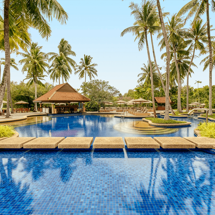 Swim up to the pool bar for thirst-quenching drinks and nifty fruit cocktails. Or sit under a coconut tree, soak up the tropical climate, marvel at the soothing ambiance and indulge in tasty snacks.