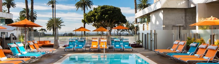 The bright and airy King Bed rooms overlook iconic Ocean Ave and delight guests with 180 degree west facing ocean views of sunny Santa Monica Beach. The Two Queen Bed rooms are situated directly behind the pool, providing premier views of the Pacific Ocean and sunny Santa Monica Beach. Boasting large balconies, these premier rooms are perfect for celebrating special occasions.
