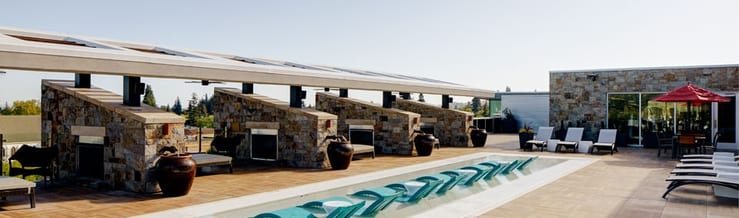 Also found on the rooftop area of Archer Hotel Napa is a spa, water deck/pool, fitness studio, lounge seating, and a whiskey bar.