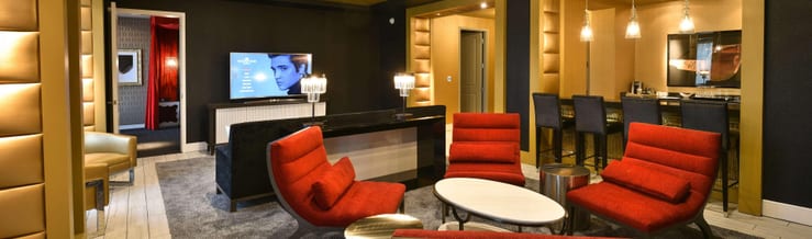 The ultimate in rock ‘n’ roll living. Unique, luxurious two-bedroom suites feature a living room, dining room, kitchen and bar area. Located on higher floors, these two specialty suites are styled with rich, luxurious colors and plush, extravagant furnishings.